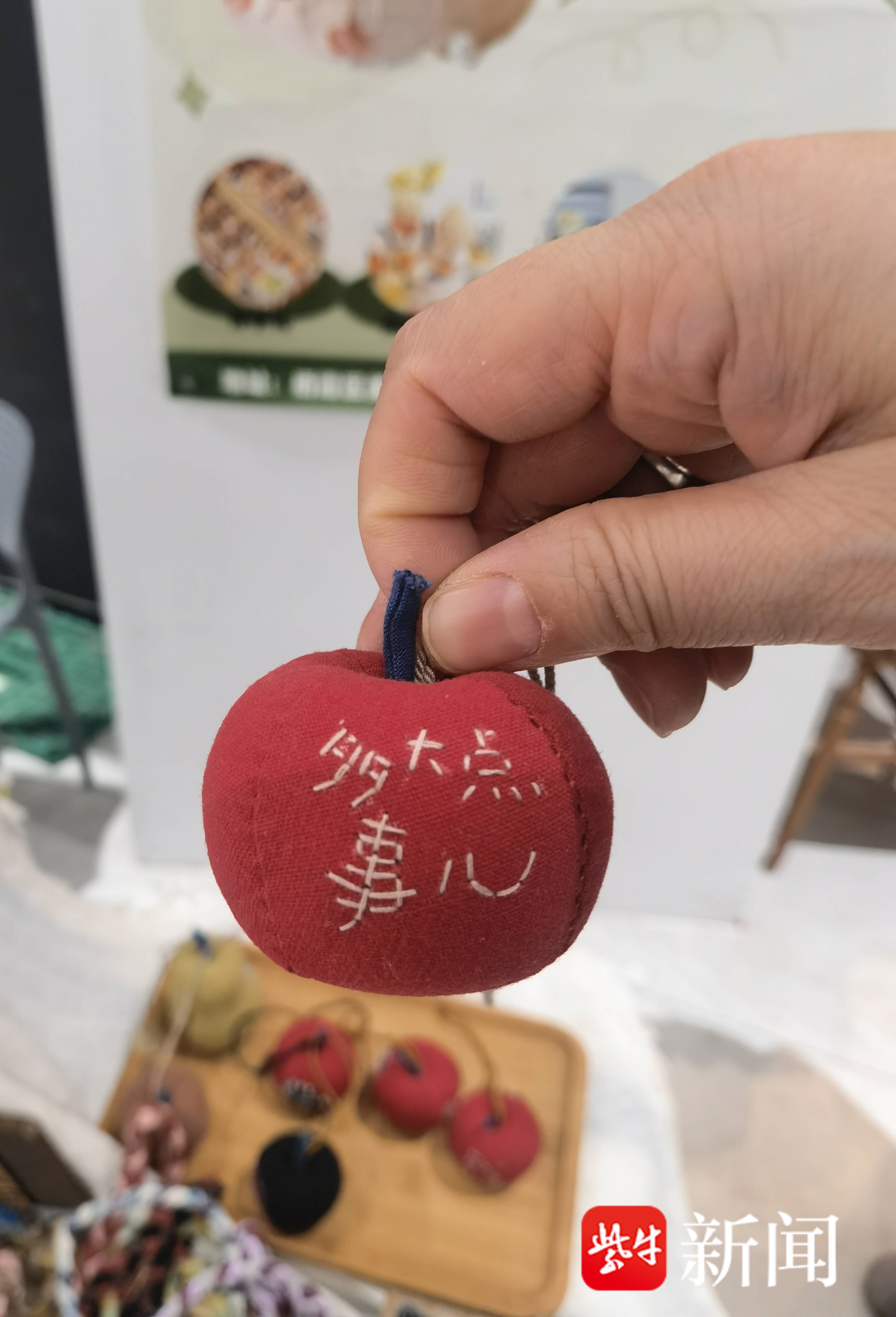 雇主先容,这些小饰品中最受接待的是红苹果。“临频年底了,红色的饰品比拟喜庆。”她也会围绕着其他生果布艺挂件念念一些创意,比如梨子时事的,就缝上“不离不弃”“自若”。