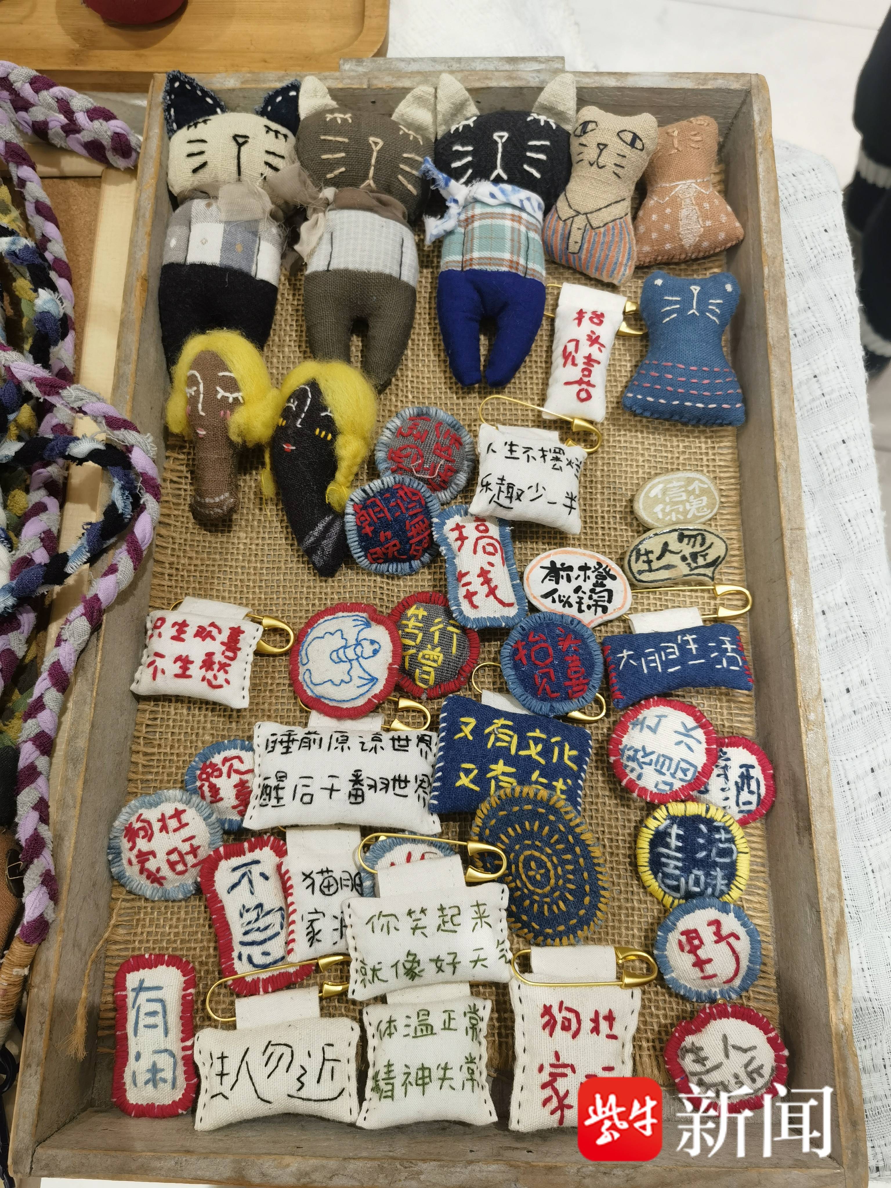 “搞钱”“只生欢畅不生愁”“不急”……摊位雇主先容,这些笔墨的实质我方参考了荟萃流行语,王人是我方一草一木缝上去的。每个布艺小物件王人有一枚金色别针,不错别在衣服省略包包上。正在购物的大学生小周告诉记者,这些小挂件有的十几元,有的二三十元,能买得起,主打一个“厚谊价值”。摊位的雇主先容,并非独一年青东说念主可爱这种小物件,各个年事阶段王人有东说念主可爱购买,可能是被这些俏皮的笔墨打动了,给生涯带来一些调剂。