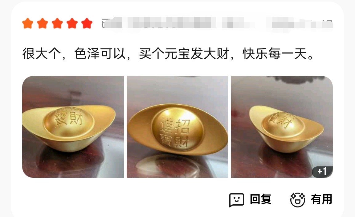 无稀奇偶,在线上售卖的一些带有“厚谊价值”的小物件也颇受耗尽者接待。南京耗尽者孙先生先容,公司最近在准备年会抽奖,采购了一些别致的小物件,比拟喜庆且讨口彩。比如铜金元宝、小银鱼、福包子,价钱王人在百元之内。其中金元宝和福包子王人是铜制的,造型喜庆,皮色似金。记者搜索发现,网上售卖这些铜金饰品的旗舰店,评分也达到了4.7分(5分制)。